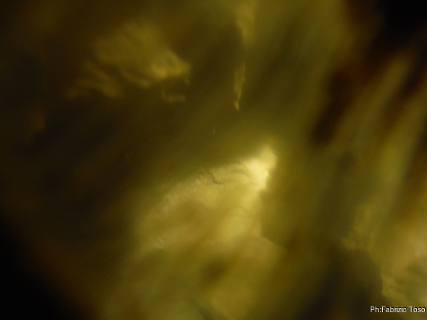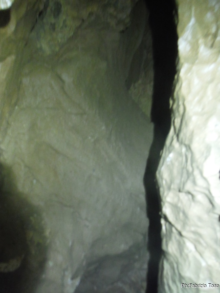 Dopo un’ora abbondante siamo riusciti a smussare la curva. Ora Matteo passa senza troppe difficolta’, io ancora no. Gli passo la fotocamera per documentare il piccolo ambiente dopo la curva.