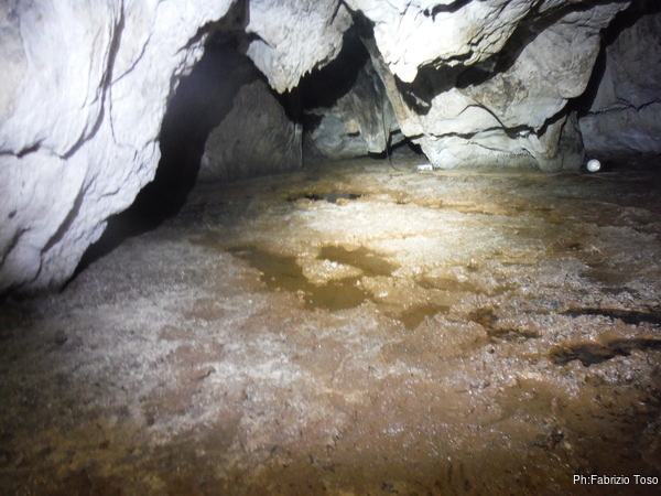 Corrado, il nostro amico che gestisce la grotta, mi ha detto che hanno gia’ provato a sondare in corrispondenza dei rivoli d’acqua, ma io vorrei comunque vedere di persona.