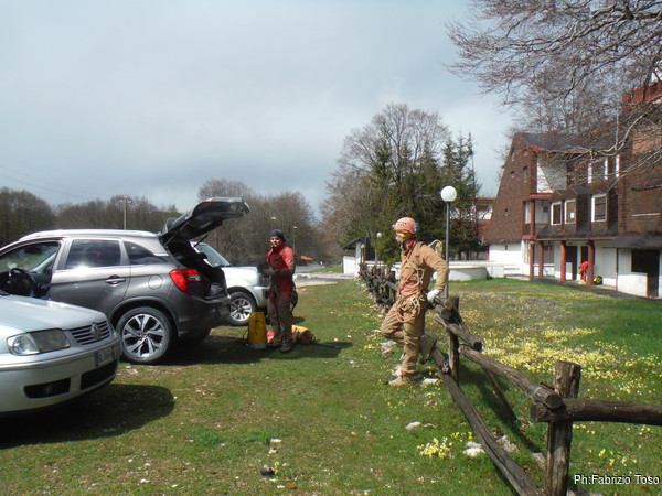 La sosta successiva e’ al parcheggio vicino alla grotta dove troviamo Valerio e Fabio gia’ quasi pronti. Iniziamo subito con i nostri preparativi per andare.