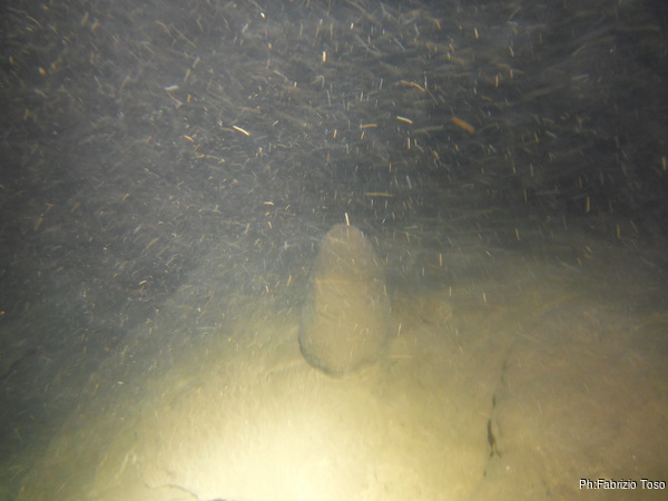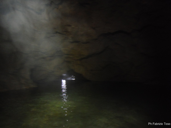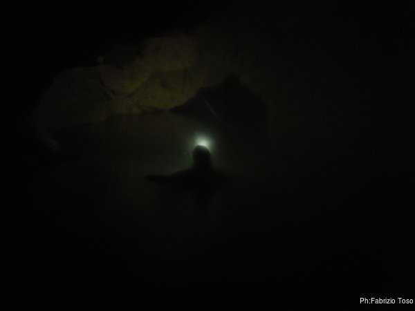 Finito con le foto a Giuseppe, inizio la nuotata, in lontananza vedo Gabriele che torna indietro. Poco piu’ avanti sifona, mi dice.