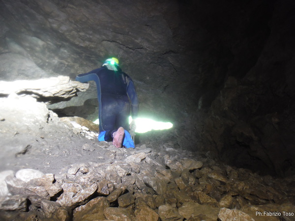 Quasi sicuramente basterebbe seguire il filo d’arianna che parte da qua per trovare il passaggio ma potrebbe essere una apnea ben lunga. Non e’ nemmeno il caso di pensarci.