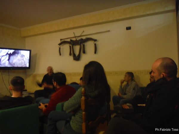 Dopo la cena c’e’ una sessione con i ragazzi per commentare la giornata e far vedere loro il video di Grotta Doli.