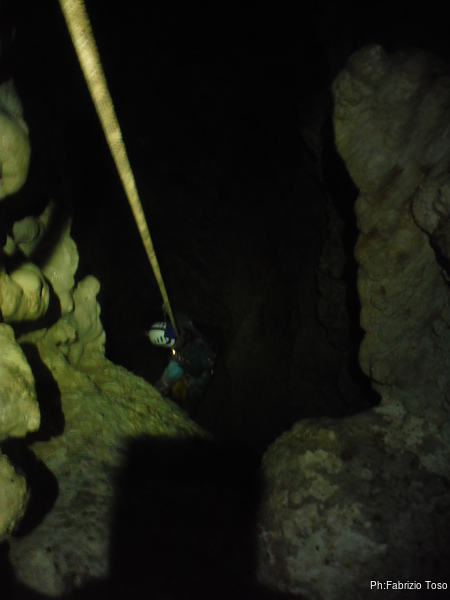 La corda su cui e’ Valentina non arriva in fondo. Dobbiamo desistere. Decidiamo che e’ ora di risalire.