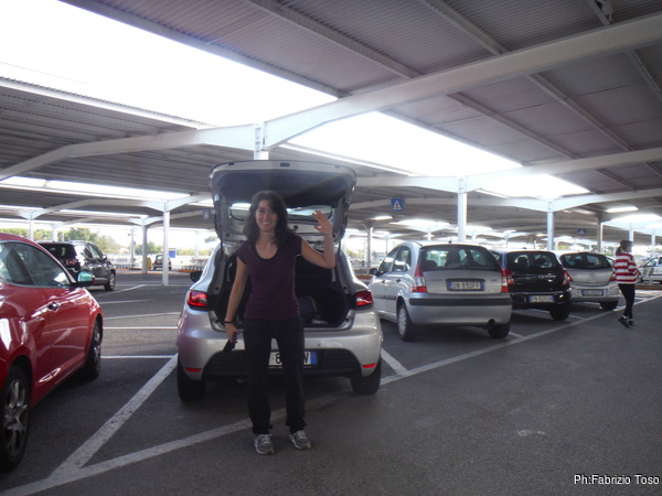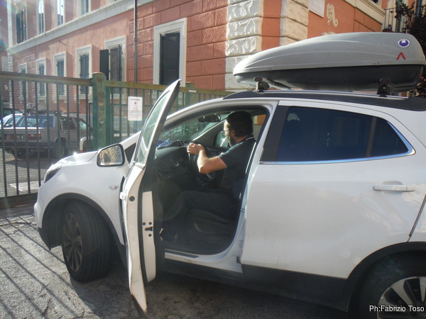 La mattina viene il buon Gabriele a prendermi, oggi esco con la fotocamera gia’ pronta e posso riprendere il suo arrivo.