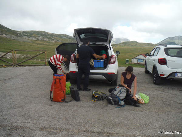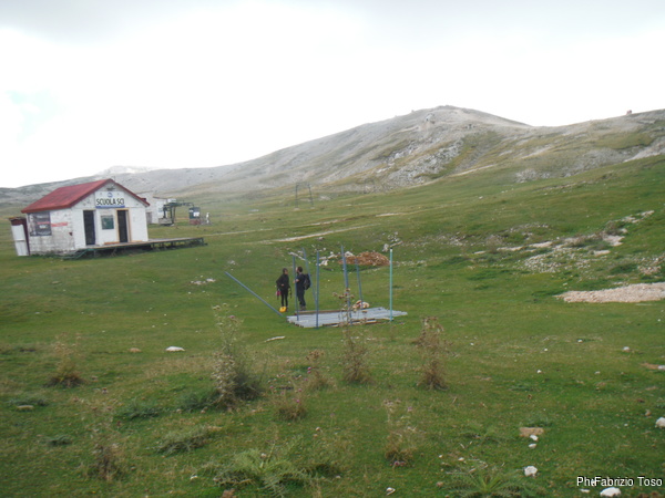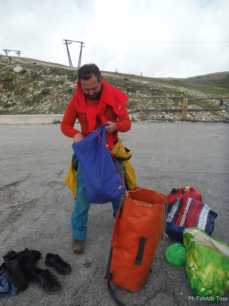 Preso tutto il necessario dal magazzino di Tarcisio, saliamo anche noi a Campocatino. Il tempo non e’ dei migliori ma speriamo regga. Iniziamo a prepararci.