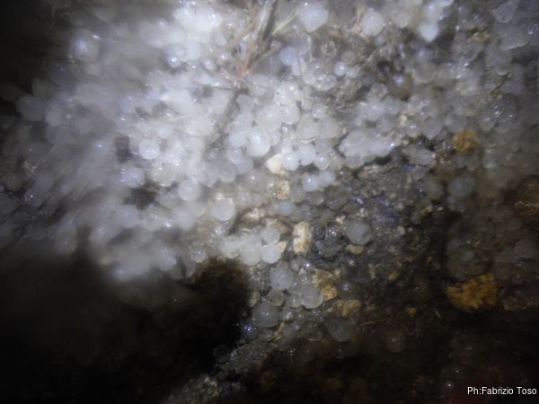 Tra un secchio e l’altro passo la fotocamera a Valentina perche’ la passi a sua volta ad Angelica. Il mucchietto di grandine ed il punto dove la nostra grotta restringe di nuovo.