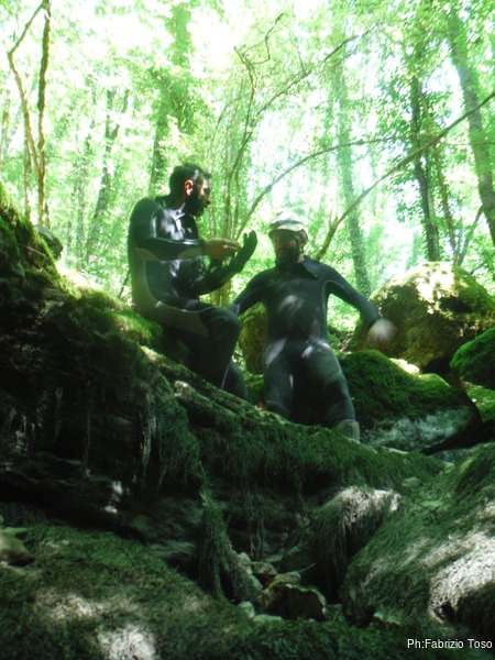 Con Matteo e Gabriele. Matteo tra un po’ finira’ le ferie e dovra’ tornare in Olanda. Ci tenevo a mostrargli la risorgenza, ma purtroppo il nostro tentativo e’ stato un buco nell’acqua. Per la prima volta da quando vengo a questa grotta, l’acqua e’ troppo alta per entrare.