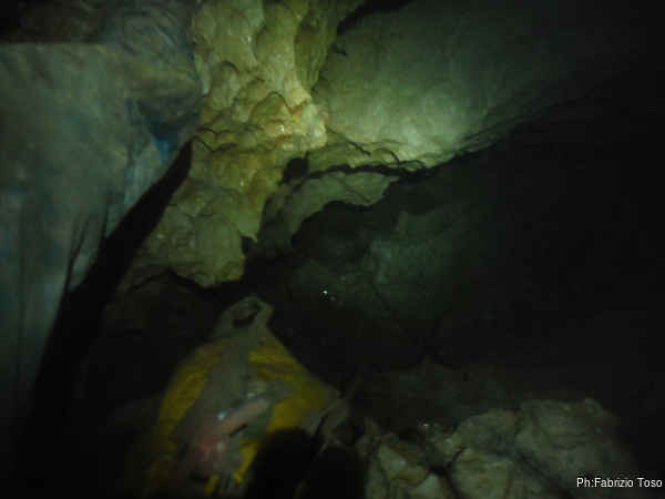 Per oggi una piccola soddisfazione ce la siamo presa. Magari la prossima volta riusciro’ a passare anche io. Mentre Angelica si riposa delle fatiche esplorative, dico a Giuseppe se vuole andare a lavorare alla strettoia del ramo laterale. Giuseppe guarda l’orologio, sono quasi le 6 del pomeriggio. E’ il caso di risalire, per oggi il nostro tempo e’ esaurito.