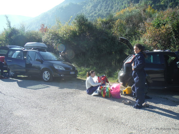 Finalmente si parte, mi installo nella macchina di Stefano ed andiamo. In un’ora e un quarto circa siamo arrivati alla Fontana del gatto (mi pare), appena fuori Ceccano.
