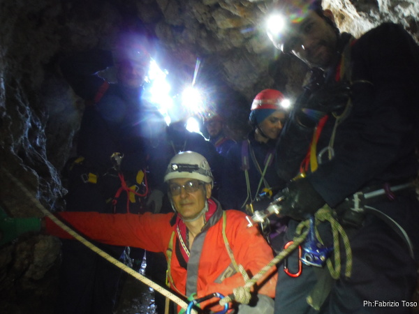 Mentre con Stefano alto facciamo un ultimo controllo alle attrezzature dei nostri pargoli, chiedo allo Stefano armante di spostarsi al pozzo successivo. Lo sento mormorare un: “e che devo fa’ tutto io?!?”, ma poi parte a fare quel che serve. Tutti pronti, affrontiamo il primo pozzetto.