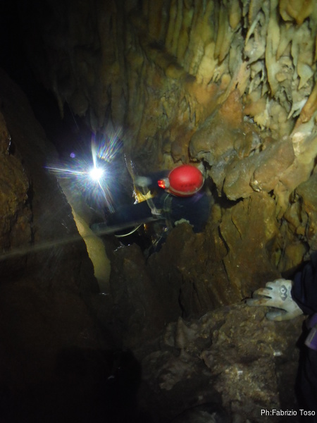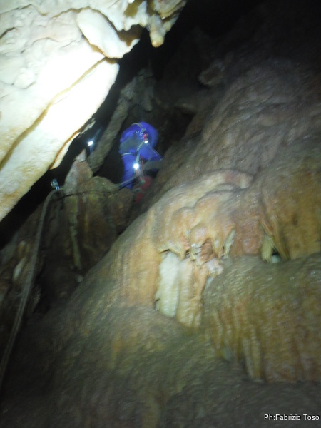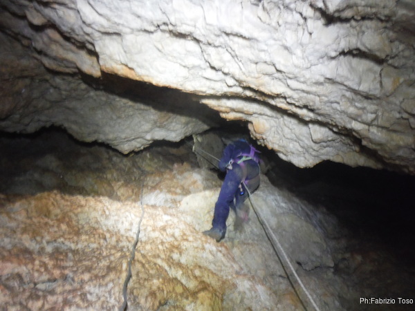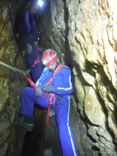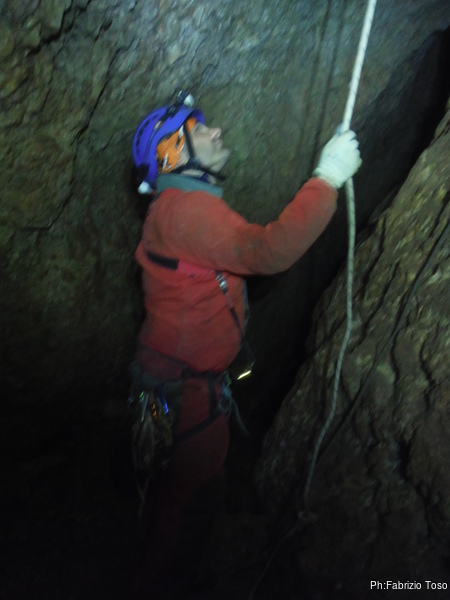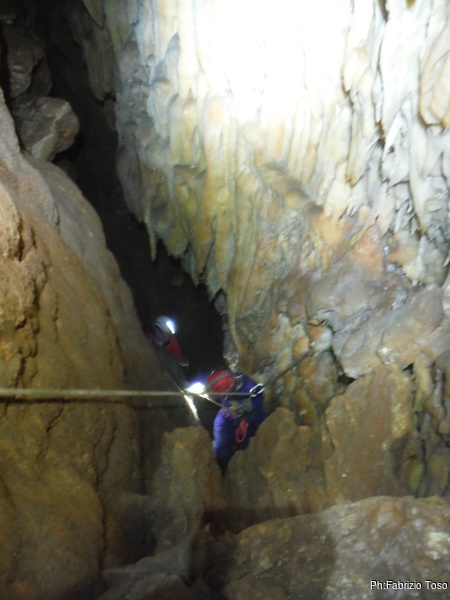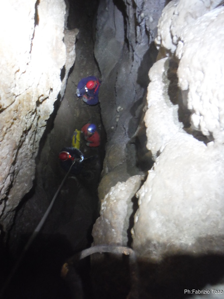 Dopo il pozzo stretto c’e’ il meandro ardimentoso e quindi il pozzo successivo.