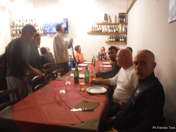 Quando arrivo al pozzetto d’ingresso trovo…proprio nessuno, sono gia’ tutti fuori. Dopo essere tornati alle macchine e cambiati, organizziamo la cena con i ragazzi del Pisciarello. La cosa si rivela piu’ complessa del previsto ma alla fine il ricongiungimento e’ fatto.