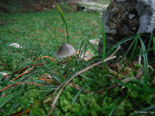 Prendo il mio zaino e vado a sistemarmi vicino ad un sasso che approssima decentemente un sedile. Il sasso pero’ e’ gia’ occupato da un minuscolo fungo. Interrompo la preparazione per fargli una foto. Eccolo in tutta la sua magnificenza, sara’ alto almeno 4 cm!