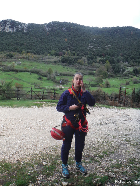 Fabio ed io rimaniamo a fare assistenza ai nostri diletti allievi. Fabio scende il saltino per fare sicura.
