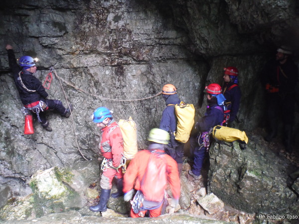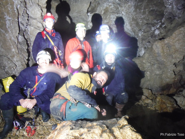 Seconda uscita in grotta per i nostri arditi corsari. A Pozzo Comune, quasi in regime di piena. Con Elena, Elisa, Enrico, Fabio, Stefano, Massimiliano, Fabio.