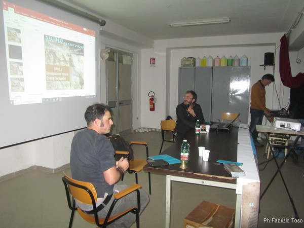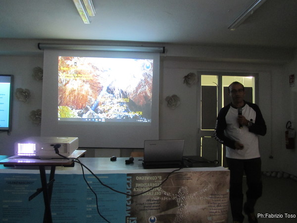 La mattina prendo posto in prima fila, non mi voglio perdere l’intervento di Fabio sul progetto Ausoni, ovvero la ricerca a tappeto di tutte le grotte sui monti Ausoni. E’ una attivita’ che dura oramai da alcuni anni ed alcune volte ho avuto il piacere di parteciparvi.