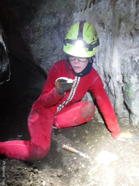 Dopo questa parentesi esplorativa, si torna al lavoro. Affianco Angelica nello scavo in un punto della sala principale vicino all’ingresso.