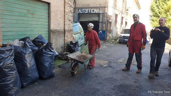 Armati di guanti sacchi e carriole, ma soprattutto di buona volontà, sono stati portati all’esterno sette bustoni di plastica, due di indifferenziato, due pneumatici, un centinaio di chili di ferro e una quantità considerevole di legno ormai marcio, ripulendo un ramo del complesso ipogeo.