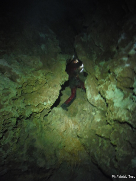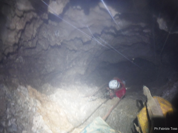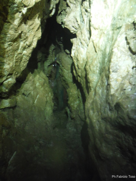 Andiamo avanti fino alla curva a gomito ed il successivo cunicolo fino a sbucare nel piccolo ambiente dove stiamo lavorando. Ci ammucchiamo tutti la’ dentro commentando quanto sara’ lungo poter andare avanti per questa direzione.