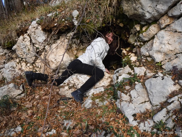 Cammin facendo il freddo ci passa, convinciamo di avere ancora abbastanza energie per andare a visitare Dolina Sfondata e Grotta Novella che Matteo ancora non conosce.