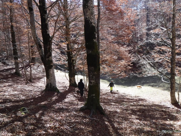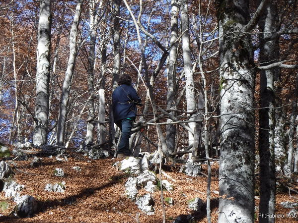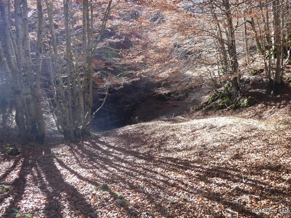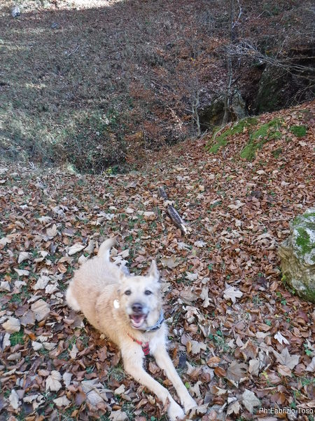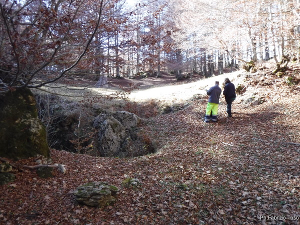 Dopo un primo tratto di sentiero, lo lasciamo ed andiamo all’interno del bosco. Vaghiamo senza fretta alla ricerca di grotte nuove e conosciute.