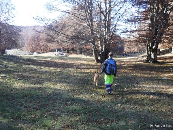 La distanza sociale viene mantenuta in maniera naturale, sono talmente lento nel camminare che sono sempre ad almeno 20 metri dai miei amici. Luna scorrazza facendo la spola tra me e loro.