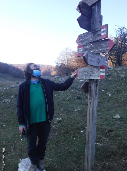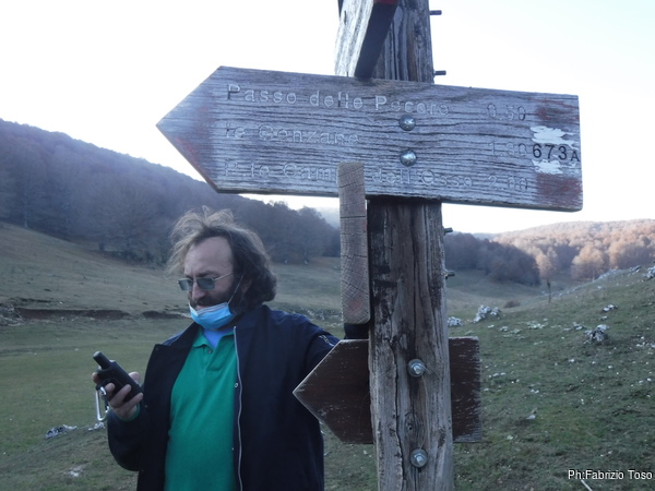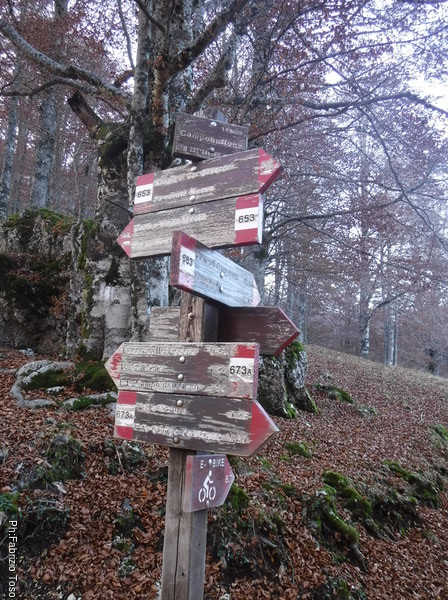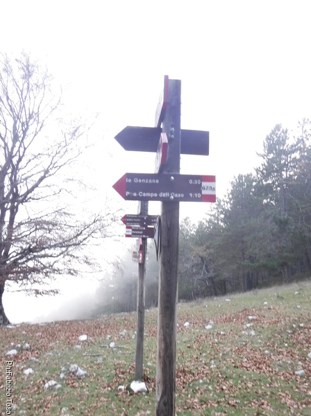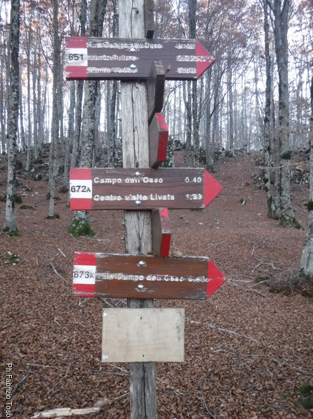 Ecco la palina con le frecce a le indicazioni. Per andare a Campo dell’Osso devremo attraversare Campo Buffone.