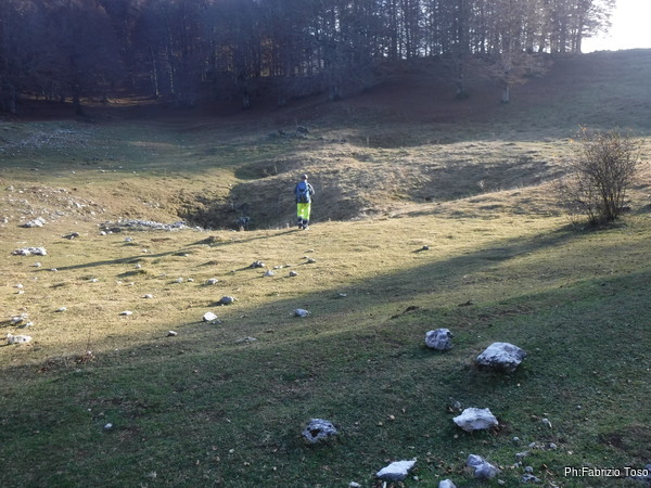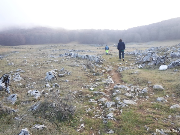Maurizio e Gabriele si avventurano a destra e a manca per vedere le doline che si presentano di aspetto invitante ed interessante. Io rimango sul sentiero per risparmiare energie.