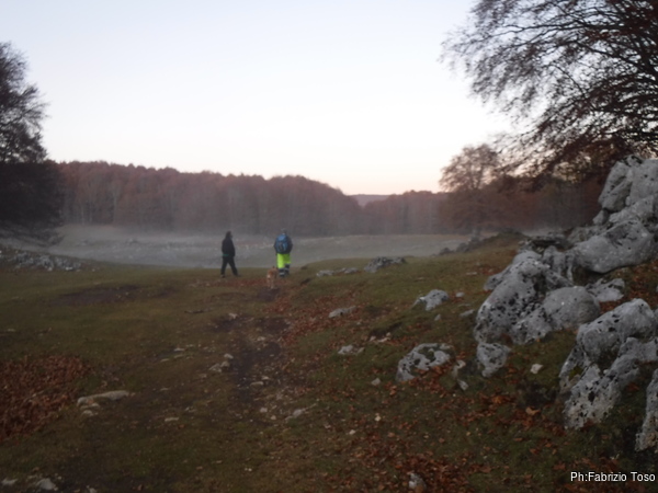 Inizia a fare notte. Ancora una breve sosta per visionare una dolina.