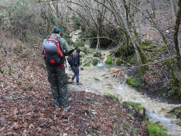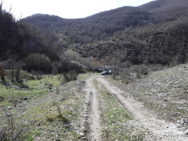 A 100 metri dalle macchine lasciamo la strada principale per prendere un piccolo sentiero sulla destra. Il sentiero ci porta nei pressi di un piccolo torrente, molto suggestivo. Lo traversiamo continuando poi a salire costeggiandolo.