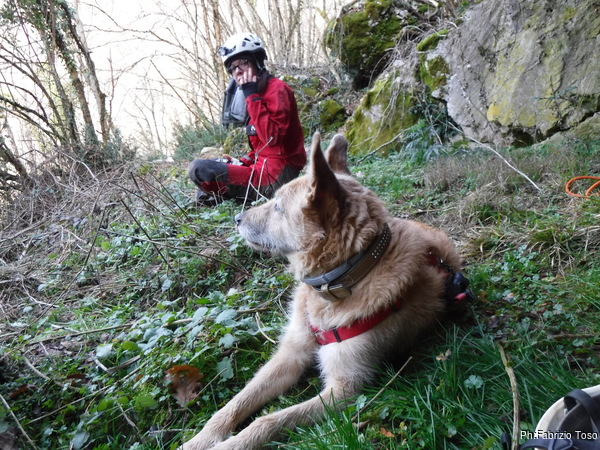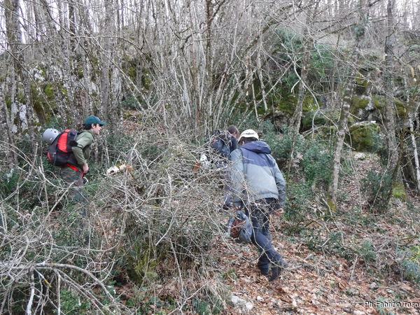 Naturalmente rinunciamo. Segniamo con cura il caposaldo finale perche’ torneremo in tempi piu’ propizi a terminare il lavoro. Tiziano sistema la corda portata da Gabriele, tanto per fare esercizio.