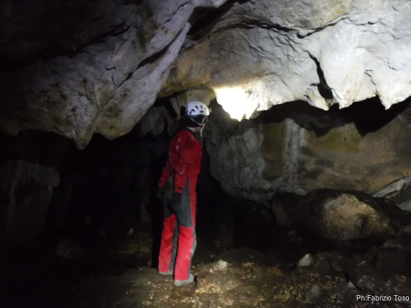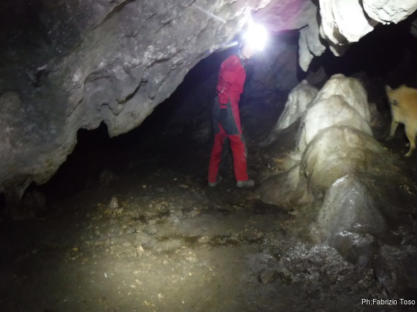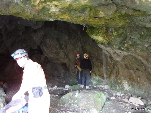 Gabriele e Ferdinando iniziano a perlustrare la grotta. Tiziano quando termina i preparativi li segue.
