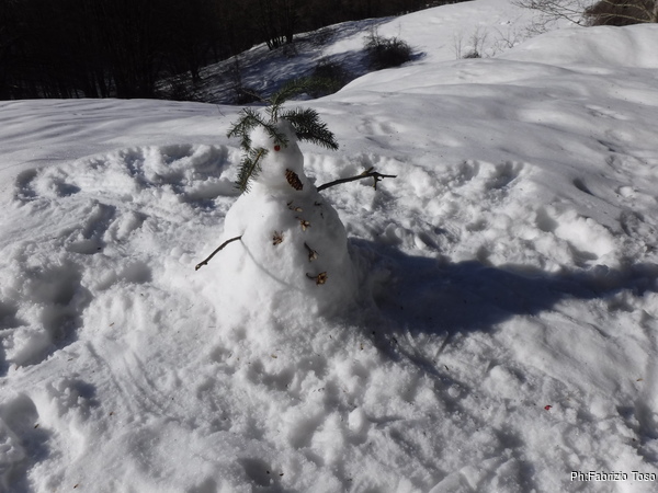 Con Gabriele e Luna a fare una ciaspolata con ricerca grotte da Monte Livata sul sentiero per Campaegli.