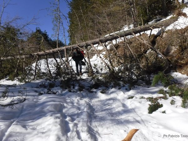 Per strada ci sono numerosi alberi crollati, una vera strage. Probabilmente non erano piu’ abituati a sopportare il peso di tanta neve.