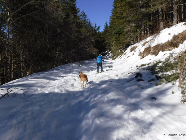 La neve e’ diventata meno compatta. E’ il momento giusto per mettere le ciaspole.