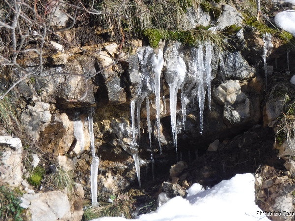 Qualche effimera stalattite di ghiaccio lungo la strada.