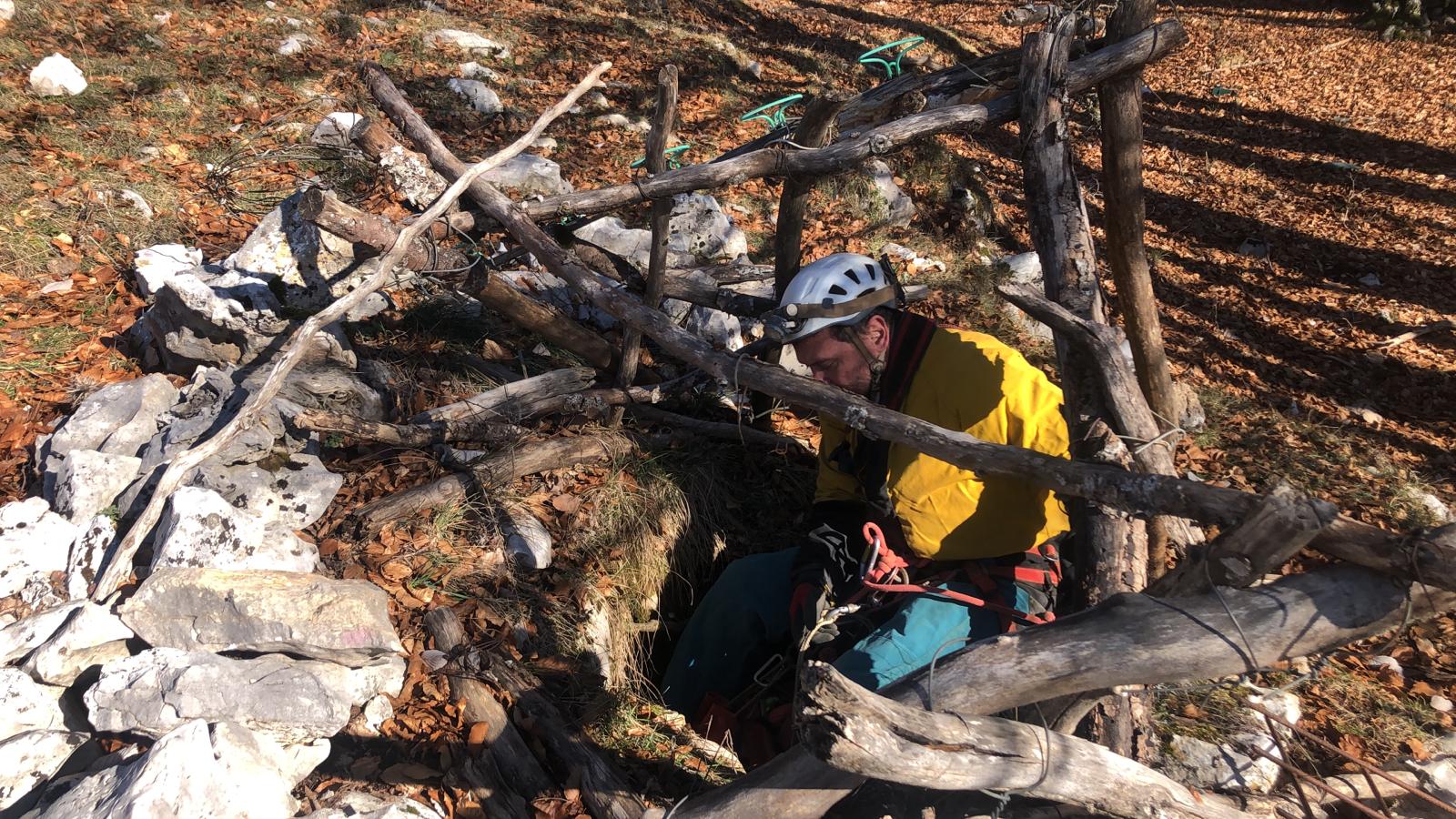 Elisa e io al fondo del ramo parallelo. Gabriele e Umberto in ricognizione nei pressi della grotta per riprendere punti GPS di grotte conosciute.