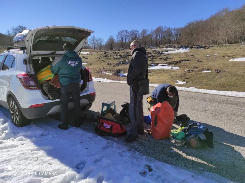 Ci cambiamo senza fretta, quando siamo pronti inizia a fare scuro…e freddo. Dobbiamo passare al magazzino a prendere un paio di cose e a posarne altre. Prima di salire ognuno nella macchina di competenza ci accordiamo per fermarci a Livata per prendere qualcosa di caldo e salutarci.