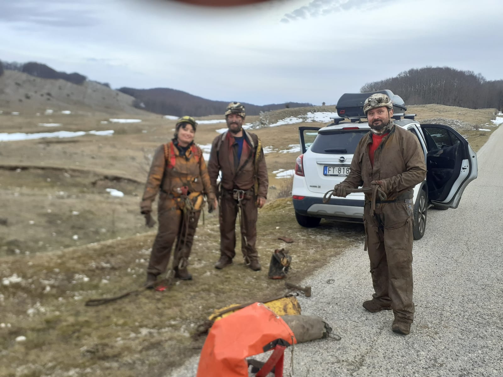 Oramai e’ quasi di routine, scendere dentro la dolina, passare la prima strettoia, fare la piccola risalita, dare uno sguardo distratto alla sala di fango prima di imboccare il meandro. Eccomi alla partenza del pozzo. Prima di scendere svuoto lo zaino e verifico de visu che ci sia tutto. Ok. Ricompongo lo zaino e scendo.