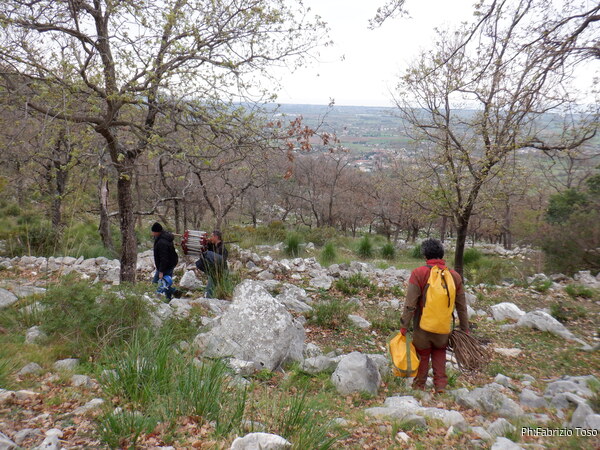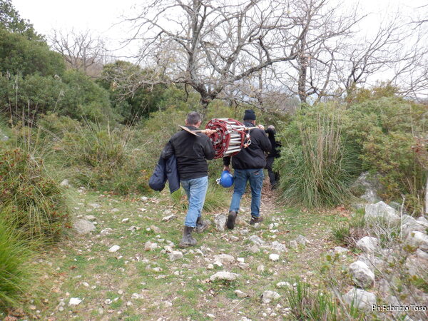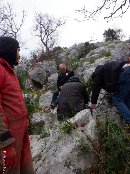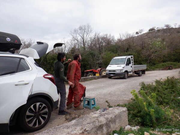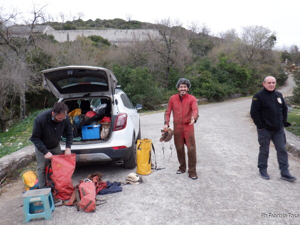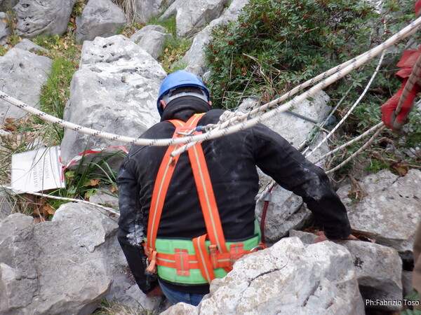 In sequenza arrivano gli amici della associazione “Linea Gustav” e quindi i militari che faranno il sopralluogo in grotta. Quando siamo tutti, ci presentiamo reciprocamente, ci mettiamo d’accordo sul materiale da portare e saliamo.