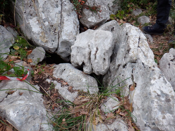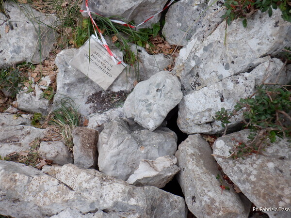 Ecco la grotta, dalla precedente visita l’ingresso e’ stato tappato con un sasso.