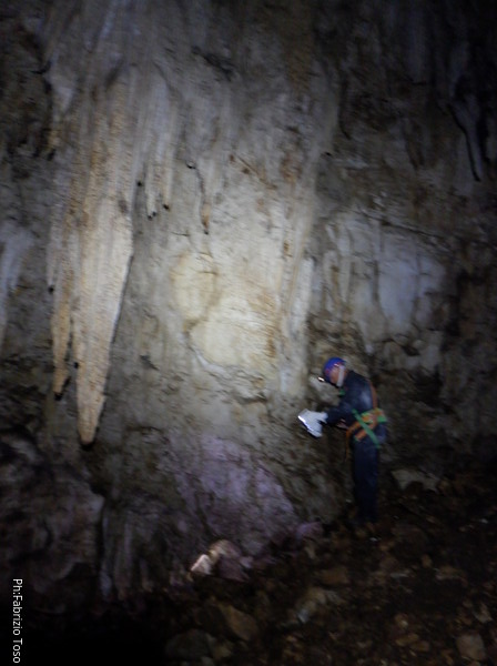 Due dei militari, i tecnici addetti all’esame del materiale in grotta, si preparano e scendono con la nostra assistenza. Dopo un poco che sono giu’ decido di andare a dare uno sguardo anche io.