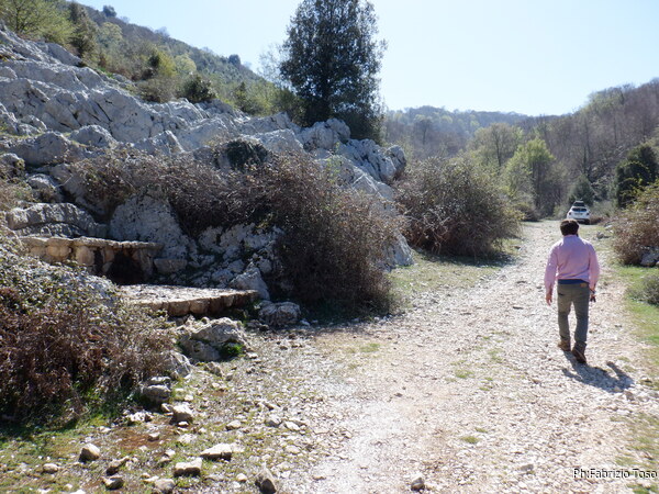 Dove siamo ora nemmeno l’invincibile cellulare di Gabriele riesce a prendere la linea quindi ci avviciniamo dalle parti di Pozzo Comune per chiamare il ristorante e vedere se hanno un posticino per noi. Sembra di si. Diciamo loro che arriveremo verso le 14.30. Intanto andiamo a dare uno sguardo all’ingresso di Pozzo Comune.