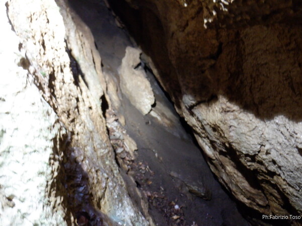 E’ ora di pranzo, Gabriele dichiara di avere fame, le speranze di trovare una prosecuzione per oggi sono minime. Decidere per un abbandono temporaneo degli scavi e’ un attimo. Uscendo vado a sbirciare gli anfratti laterali, prima uno…