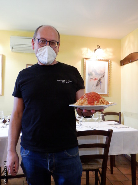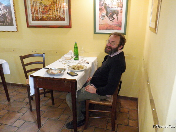 Ci accomodiamo e ordiniamo le nostre fettuccine, Gabriele col tartufo ed io classiche, al sugo di spezzatino.