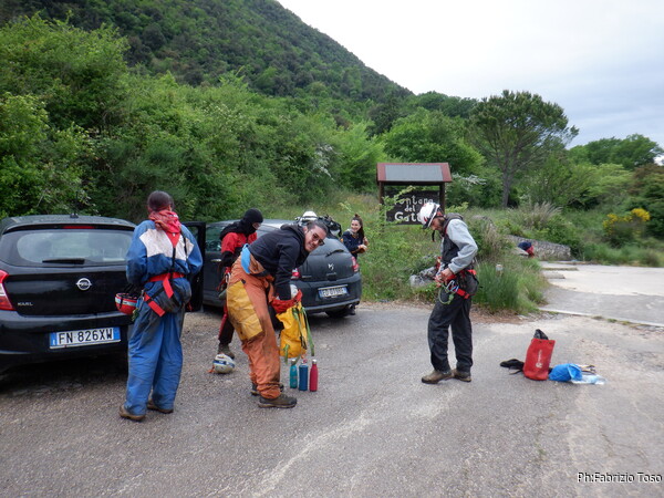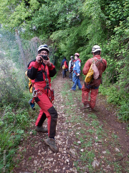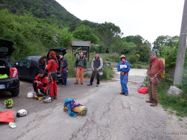 Mentre il gruppo arriva e si sistema , io termino i preparativi e inizio l’armo della grotta. La squadra d’armo subisce un cambiamento dell’ultim’ora. Perde Nerone e guadagna Elisa. Bene, andiamo!