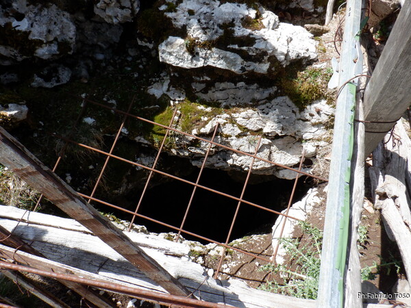Per ingannare l’attesa torno al pozzo dove prosegue la grotta e scatto una foto anche a lui. Lo scuro che non permette di vedere oltre e’ sempre un potente stimolo alla esplorazione, anche in caso di posti gia’ conosciuti a molti.