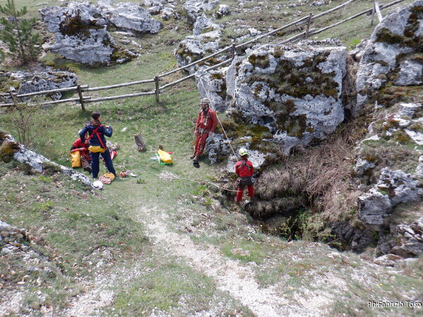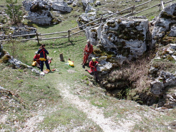 Qualche minuto di intensa attivita’ e siamo pronti, e’ ancora Angelica a partire decisa verso la grotta.