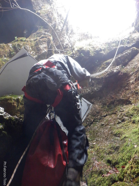 Tutto pronto, si riparte. Arrivo alla partenza del pozzo e mi sistemo comodo per fare assistenza agli allievi che si cimenteranno. Victor e’ il primo a passare.