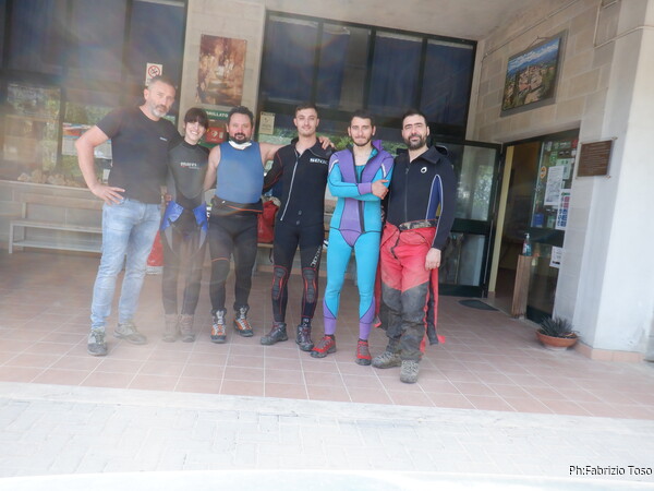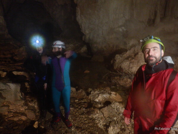 Del gruppo speleo che frequento siamo io, Bibbo (Fabrizio) e Luca, mentre del gruppo Cai, due ragazzi: Angelo, Giulio e la sua Go-Pro che merita una relazione a sé per le sue performance.